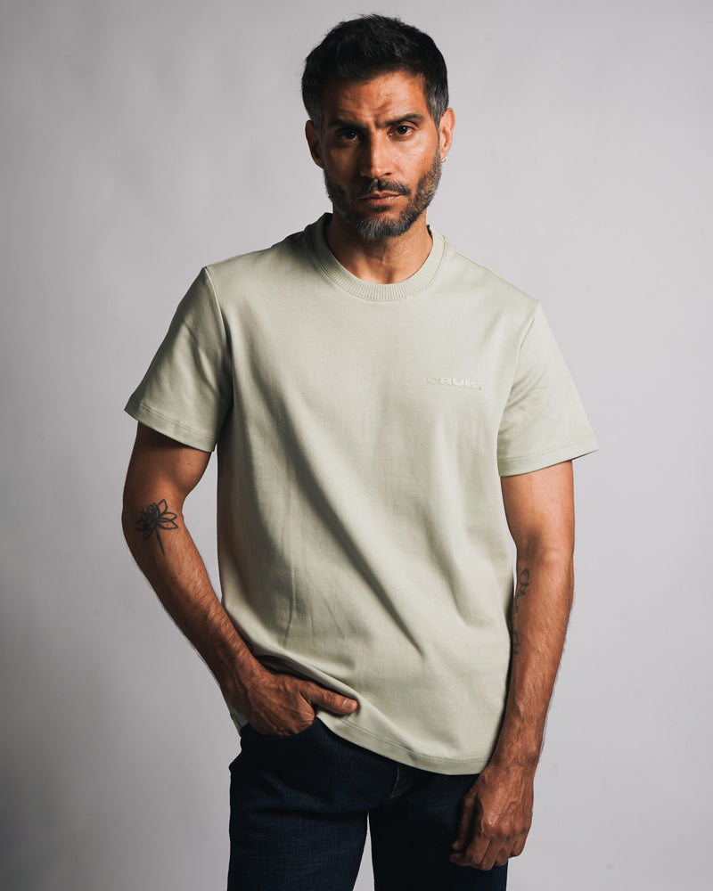Camiseta básica en algodón pesado de 280 gramos, que mantiene caída, forma y consistencia sin transparentar.